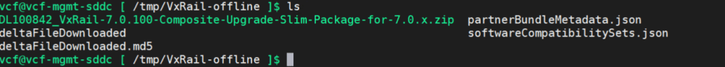 cp DL100842_VxRail-7.0.100-Composite-Upgrade-Slim-Package-for-7.0.x.zip /nfs/vmware/vcf/nfs-mount/bundle/depot/local/bundles/DL100842_VxRail-7.0.100-Composite-Upgrade-Slim-Package-for-7.0.x.zip