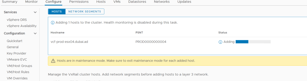 We can monitor the process in the UI also. Just browse to the VxRail Manager IP